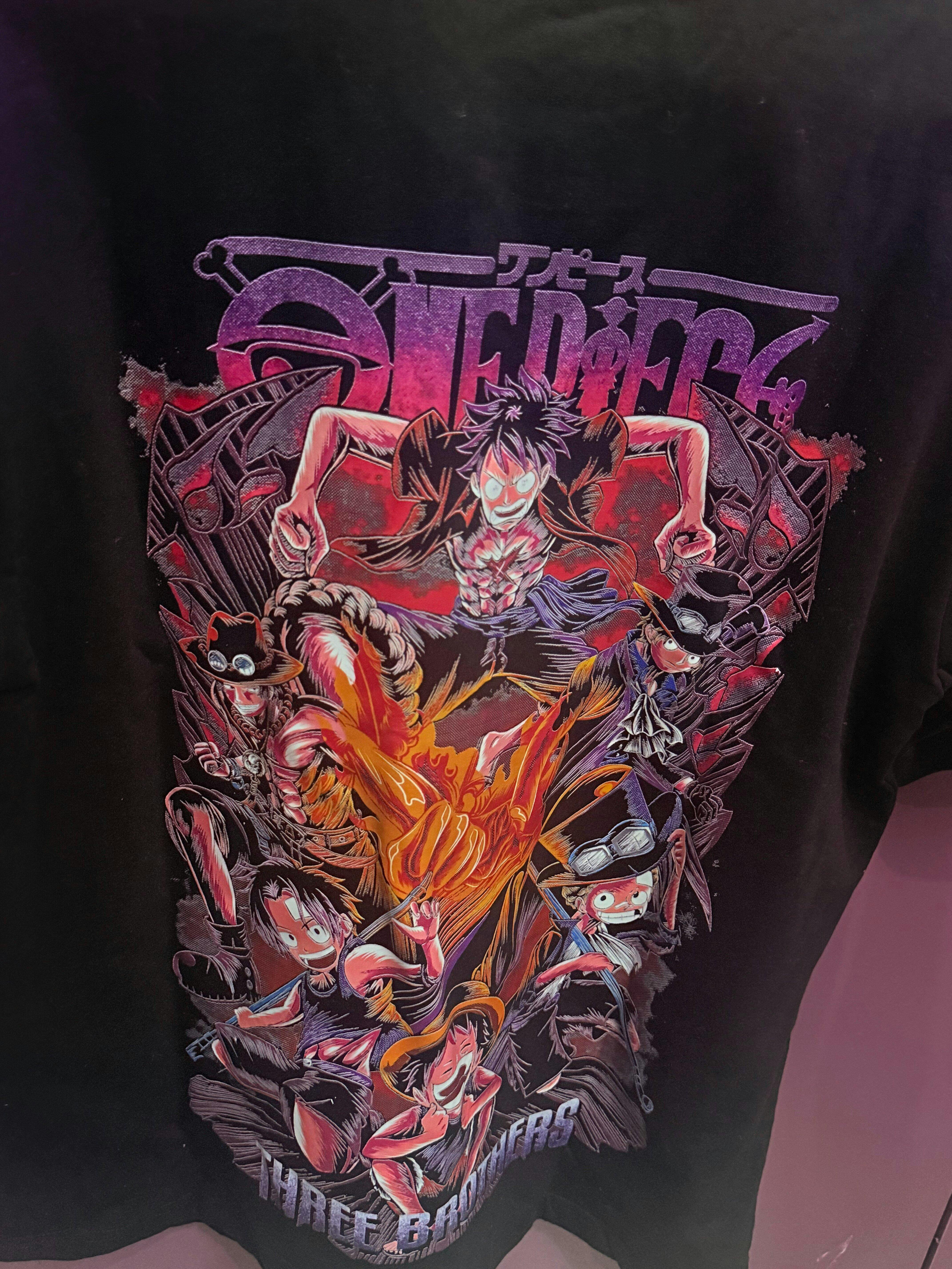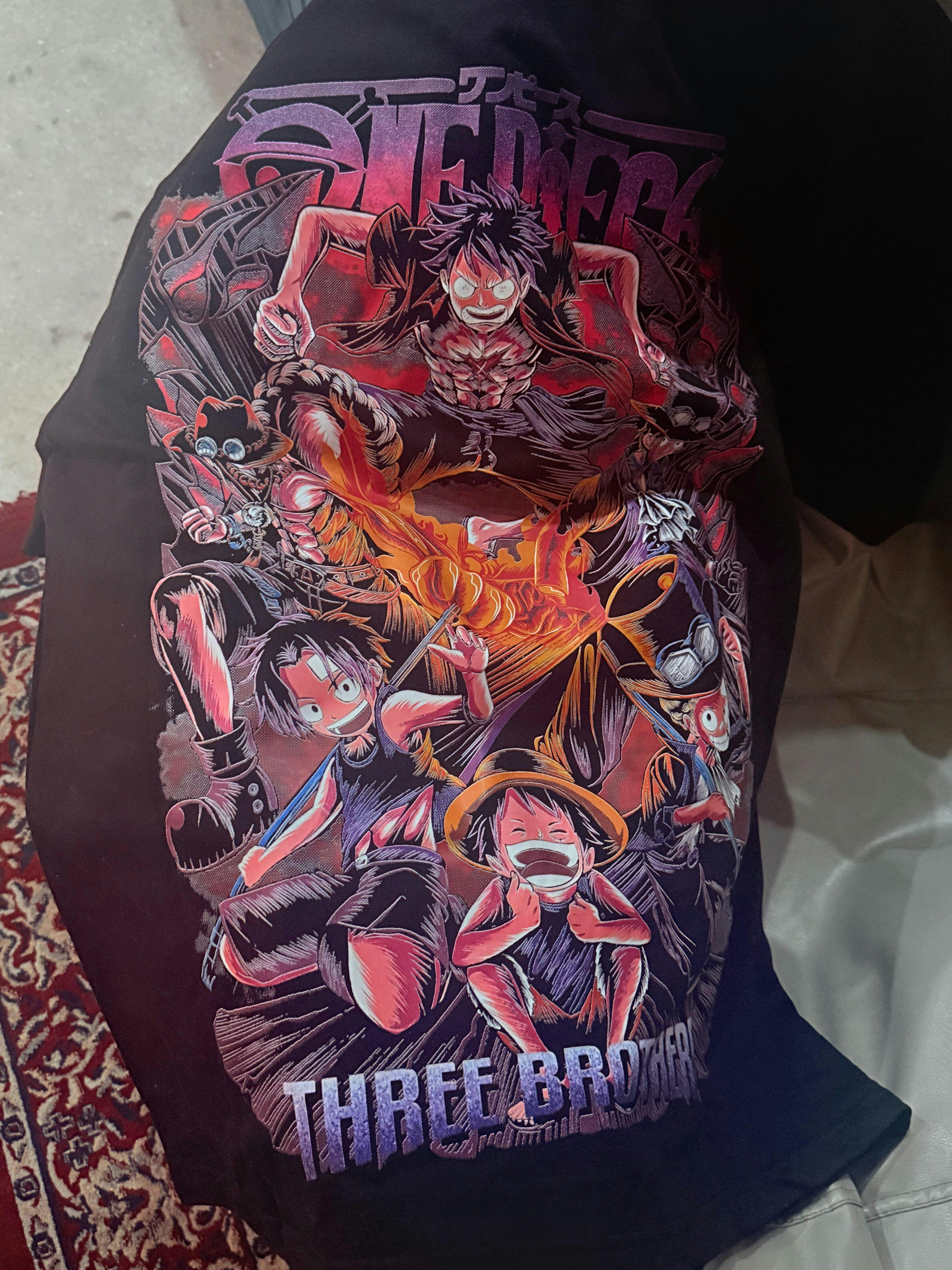 Bring legendary brotherhood to your fit with the One Piece – Three Brothers Oversized Tee, featuring Luffy, Ace & Sabo in an electrifying high-resolution print. The bold anime artwork blends vibrant colors, dynamic poses, and iconic energy effects — making it a must-have for true One Piece fans.
